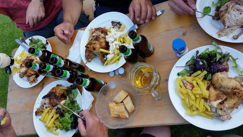 Wer Zeit hat sollte mal oben zur Burg kraxeln, dort hat man eine tolle Aussicht. Nach der Tour dann kaltes Bier und Gegrilltes, das passt dann!