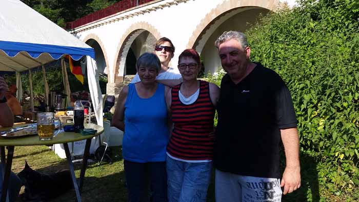 Wir teilten uns auf, manche blieben im Städtchen, andere fuhren mit dem Sessellift hinauf zum Gasthaus. Hier hat man einen überragenden Blick auf die Burg und Vianden. Die Rücktour führte uns durch's Müllerthal, über La Rochette, Diekirch wieder zurück zum Basislager. Kaum angekommen und das erste Bier genossen, erschienen Gini, Marco, Nicole und Jerry mir Platten voller Forellenhäppchen!