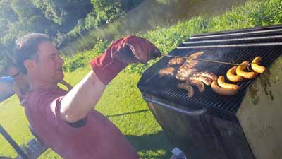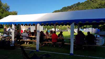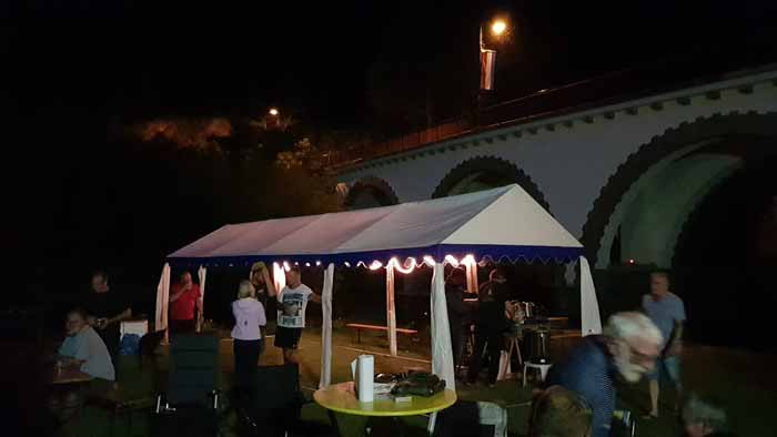 Am Camping "du Moulin" angekommen dann.... Zapfanlage prüfen..., Zelt aufbauen... Hähnchengrill leeren.... und so manche Bofferdinge noch zum nachspülen. . .